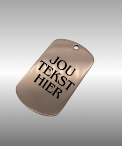 Maak je stijl compleet met deze stijlvolle Dogtags Deluxe, verkrijgbaar als sleutelhanger of ketting. Gemaakt van hoogwaardig roestvrij staal en voorzien van een scherpe, duurzame gravure, zijn deze dogtags perfect om een persoonlijke boodschap, naam, datum of symbool te vereeuwigen.